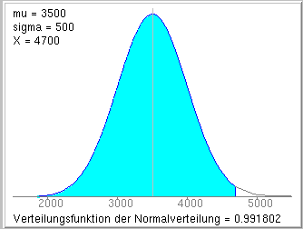 D.h. die Wahrscheinlichkeit ist 0.9918, in der genannten Grundgesamtheit wiegen damit 99.18 % aller Neugeborenen nicht mehr als als 4700 g.