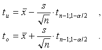 Wird die Standardabweichung wie angegeben aus der Stichprobe geschätzt, so muss man statt der Quantile der Standardnormalverteilung die Quantile der entsprechenden t-Verteilung benutzen und erhält die Ergebnisse in Tabelle 7.3. Die benötigten Quantilwerte der t-Verteilung sind in Tabelle 7.4 enthalten.