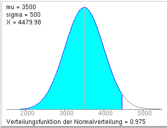 D.h. die gesuchte Schranke beträgt 4480 g. In der genannten Grundgesamtheit wiegen also 97.5 % aller Neugeborenen nicht mehr als 4480 g. 2.5 % wiegen mehr als 4480 g.