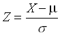transformiert man eine normalverteilte Zufallsvariable X:N(m,s2) in eine Standardnormalverteilung.
