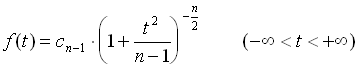 bestimmen lässt. Der Graph von f ähnelt dem der Dichte der Standardnormalverteilung. f hat sein Maximum bei t=0 und nähert sich symmetrisch zur y-Achse asymptotisch der t-Achse. Die Form der Verteilung hängt noch vom Umfang n der Stichprobe ab, aus der die empirische Standardabweichung berechnet wurde. Je größer n ist, desto mehr nähert sich die t-Verteilung der Standardnormalverteilung an.