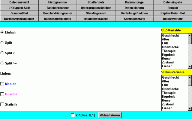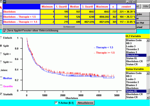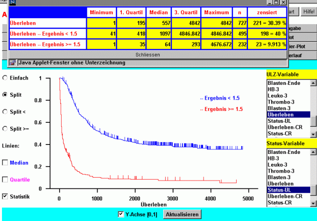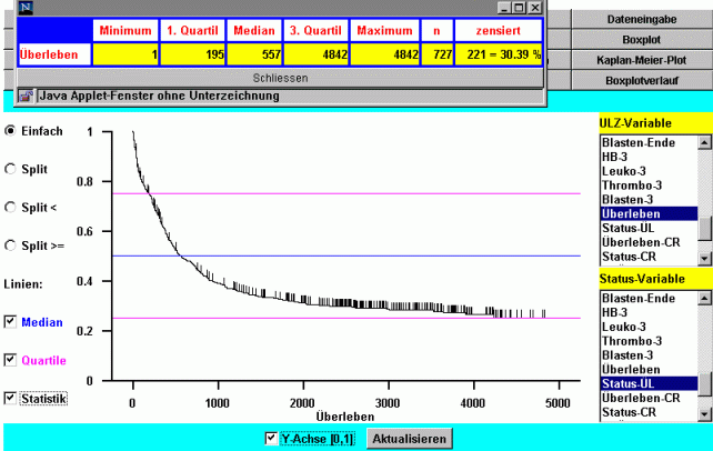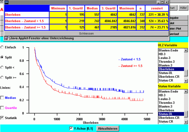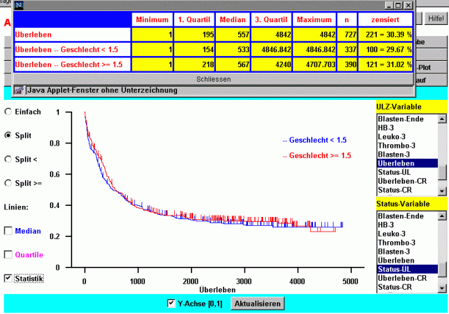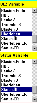 Man kann nun am rechten Rand die Überlebenszeit(ULZ)-Variable und die Statusvariable markieren und erhält nach Anklicken der Taste "Aktualisieren" das folgende Ergebnis.
