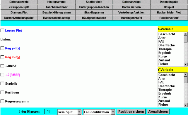 Nach Anklicken der Taste "Scatterplots" erhält man folgendes Bild.