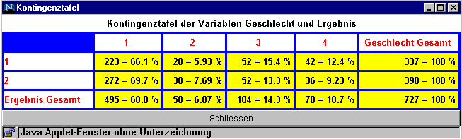 Um zwei qualitative Merkmale zu vergleichen wird die Option "Kontingenztafel" angeklickt.