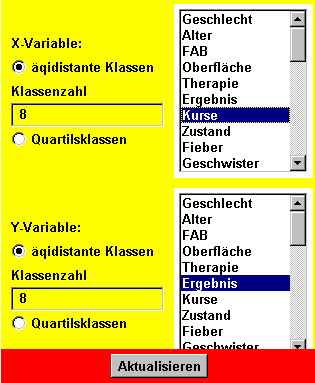 Zur Beantwortung der nächsten Frage werden die Variablen Kurse mit der Option "Äquidistante Klassen" und Ergebnis ausgewählt.