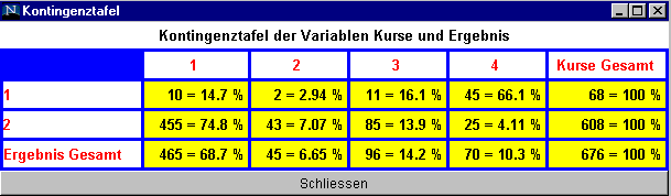 Zur Beantwortung der nächsten Frage werden die Variablen Kurse und Ergebnis ausgewählt.