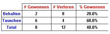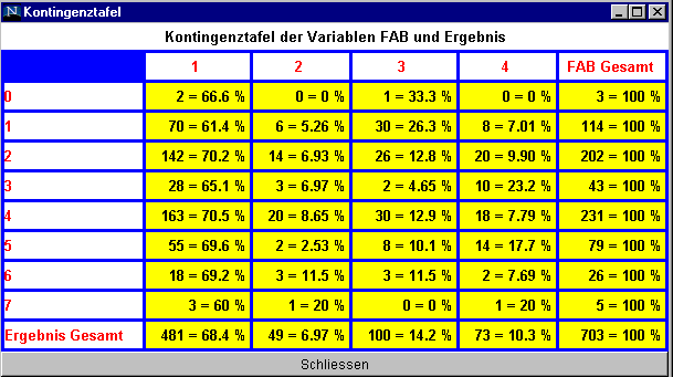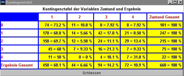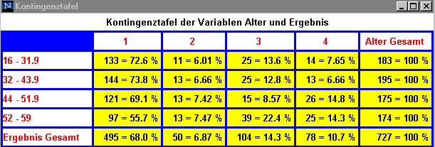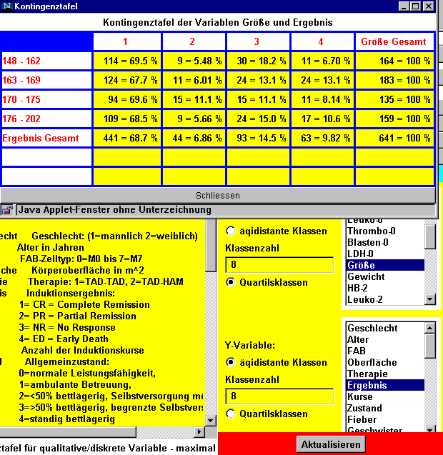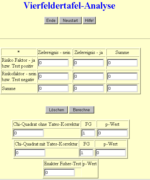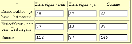 Nach Aufrufen der Javacript-Prozedur - Vierfeldertafel erscheint folgendes Bild.