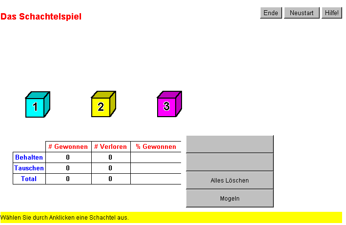 Nach Aufruf des Applets "Schachtelspiel" erscheint folgendes Bild.