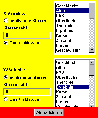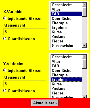 Bei der Auswahl der Variablen FAB-Zelltyp ist darauf zu achten, dass man wieder mit der Option "Äquidistante Klassen " arbeitet.