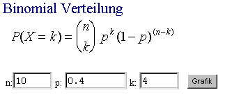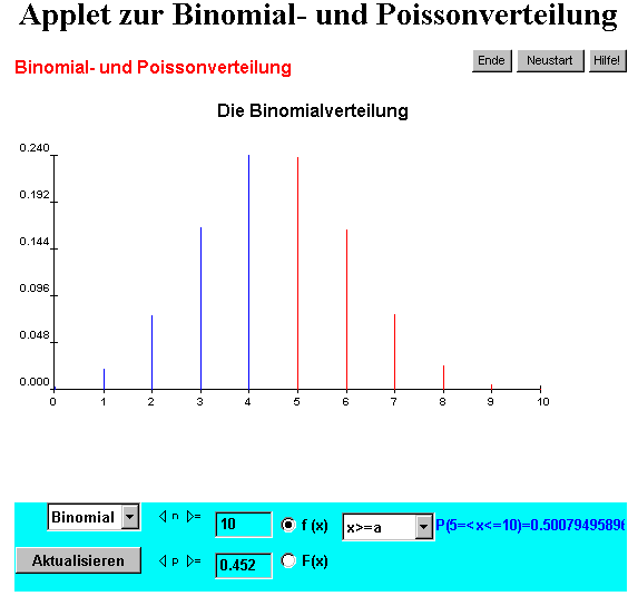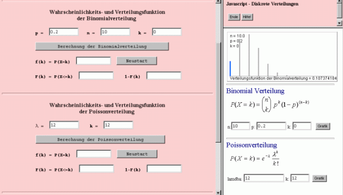 Nach Aufruf des Javascript/Applets "Diskrete Verteilungen" erscheint folgendes Bild.
