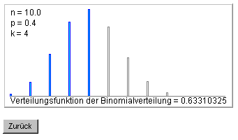 Aus den Zahlenangaben der Aufgabe 2 ergeben sich für die Binomialverteilung die Parameter n=10 und p=0.4.