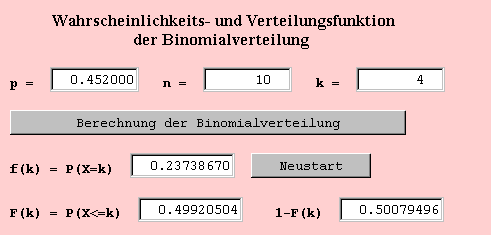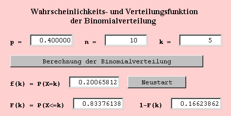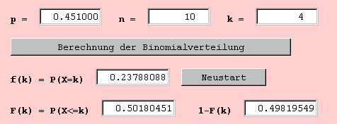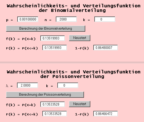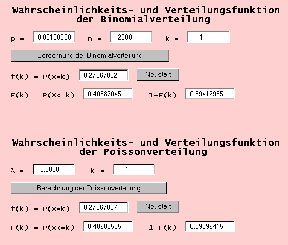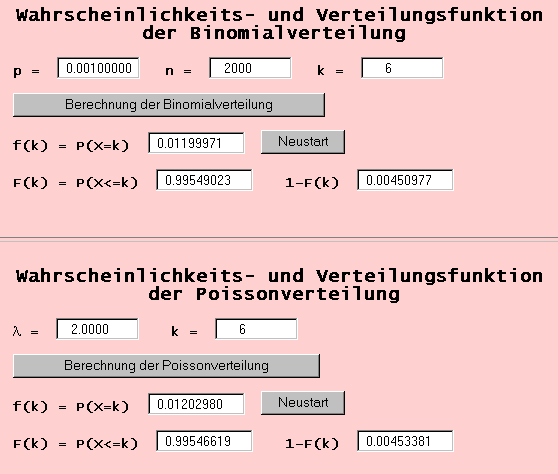 Zum gleichen Ergebnis wäre man auch mit dem Applet zur Binomial- und Poissonverteilung gekommen.