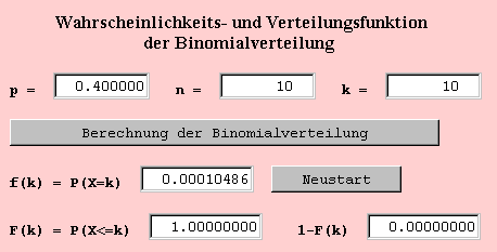 Für alle Werte von k k=0,....,10 kann man nun die Berechnungen vornehmen.