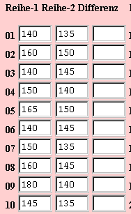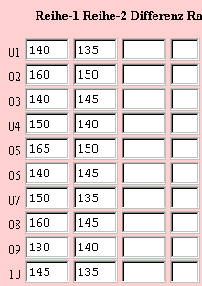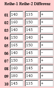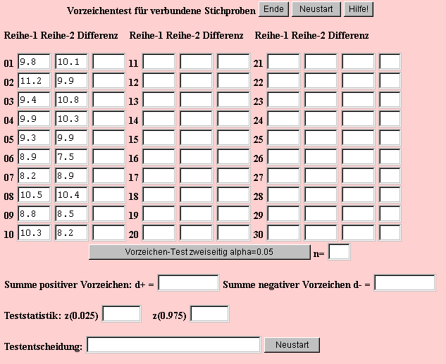 Nach Aufruf der Javascript-Prozedur "Vorzeichentest für verbundene Stichproben" erscheint folgendes Bild.