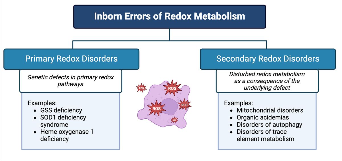 Bei diesen Erkrankungen tritt die Störung des Redoxgleichgewichts als Folge eines zugrunde liegenden Defekts auf. Hierzu gehören: