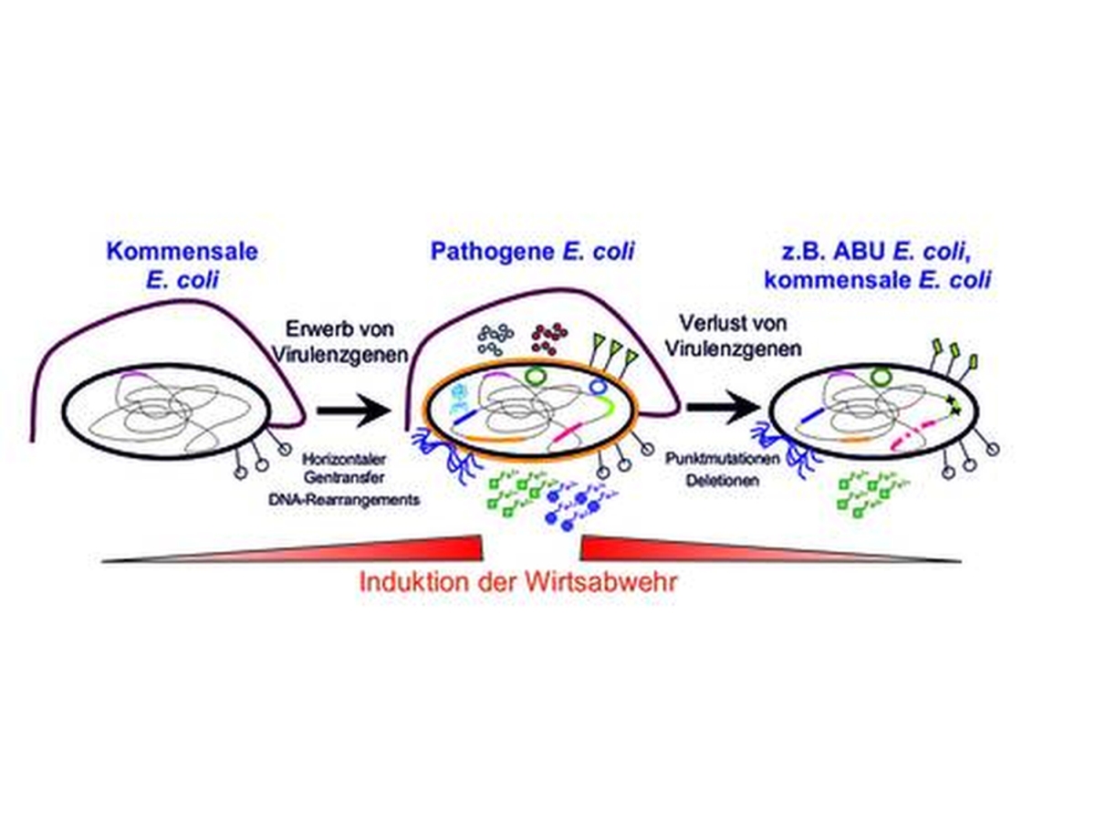Um diese Fragestellungen zu beantworten, verwenden wir Escherichia coli als Modellorganismus, da diese Spezies nicht nur apathogene kommensale, sondern auch sogenannte extraintestinal pathogene E. coli (ExPEC) und intestinal pathogene E. coli (IPEC)-Varianten umfasst. Während eine IPEC-Infektion zu Durchfallerkrankungen führt, können ExPEC vor allem Harnwegsinfektionen (die häufigste bakterielle Infektion in industrialisierten Ländern) und Meningitis bei Neugeborenen verursachen. Darüber hinaus sind ExPEC auch häufig als Erreger nosokomialer Infektionen oder Septikämien von großer Bedeutung. Die ständig zunehmende Zahl und Verbreitung (multi-)resistenter Varianten stellt ein großes Problem bei der Behandlung von E. coli-Infektionen dar.