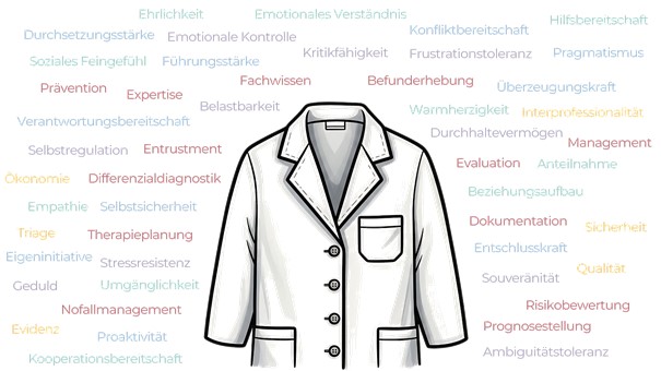 Da u.a. die Halbwertszeit des medizinischen Fachwissens immer geringer wird, geht es im Medizinstudium an der Universität Münster nicht nur um die Aneignung von fachlichen Inhalten, sondern ebenso darum, was Studierende brauchen, um in diesem Beruf bestehen zu können. Dementsprechend werden sie auch für die Entwicklung ihrer professionellen Identität sensibilisiert und bei diesem Prozess durch curriculare und extracurriculare Angebote unterstützt. Dabei wird den Studierenden in unterschiedlichen Lehrveranstaltungen im Laufe des Studiums Raum gegeben, die Werte, Überzeugungen, Haltungen, Denkmuster und Verhaltensweisen zu integrieren, die mit ihrem beruflichen Rollenkonzept als Mediziner*in einhergehen. Eine solche kontinuierliche, reflektierende Auseinandersetzung mit der eigenen Person und der professionellen Rolle geschieht immer vor dem Hintergrund eines sich ständig verändernden medizinischen Umfelds und einer sich dynamisch entwickelnden Gesellschaft.