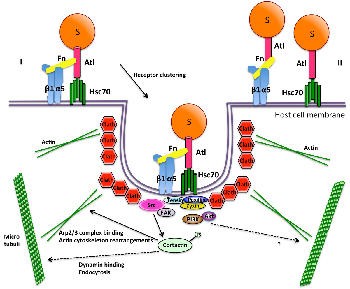 In this prolongation project, we characterized the previously identified Atl-mediated staphylococcal internalization mechanism by human host cells in detail (see Figure B).
