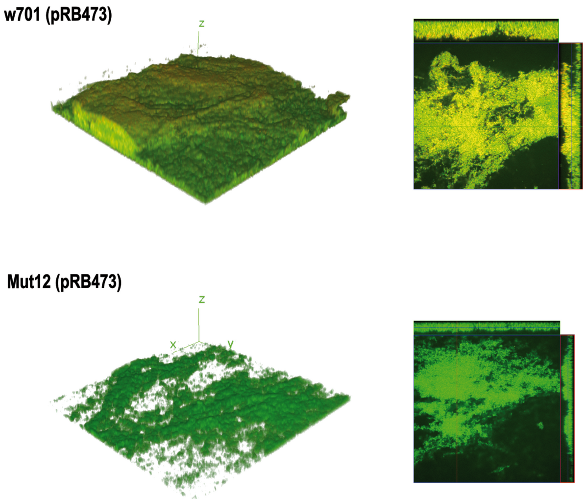 Extracellular (e)DNA is a major structural component of staphylococcal biofilms. We identified a novel mechanism of eDNA generation in the coagulase-negative Staphylococcus lugdunensis mediated by the competence gene comEB. comEB is part of the comEABC competence operon. The S. lugdunensis comEB mutant has a severe defect in biofilm formation with strongly decreased eDNA levels as visualized by confocal laser scanning microscopy (see Figure A). The underlying mechanisms in the eDNA-dependent biofilm formation mediated by the competence operon comEABC were studied in more detail.