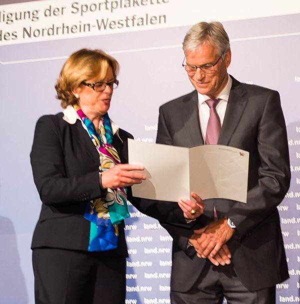 Münster (mfm/lil) - Seit 1959 wird die Sportplakette Nordrhein- Westfalen als Anerkennung hervorragender sportlicher und turnerischer Leistungen sowie besonderer Verdienste bei Ehrenämtern…