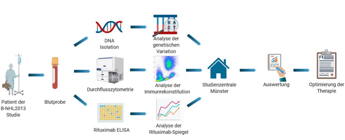 Im Zentrum dieser Studie steht die Therapieoptimierung für junge Patienten mit reifen B-Zell Lymphomen/Leukämien durch die Hinzunahme eines gegen CD20 positive B-Zellen gerichteten Antikörpers zur bereits etablierten Kombinationschemotherapie. Des Weiteren erfolgt der randomisierte Vergleich der Verabreichung von einer bzw. sieben Antikörperdosen.