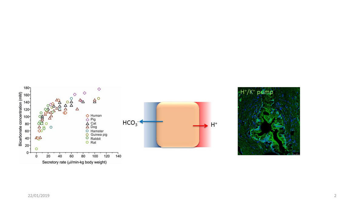 Pancreatic bicarbonate secretion by pancreatic ducts generates pH gradients that may promote over-expression of proton pumps in pancreatic neoplasias and cancer