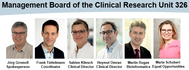 The CRU326 implemented a management board (MB), which consists of the spokesperson, the research coordinator, two additional PIs, the clinical representative, and the equal opportunities representative. The MB meet monthly to coordinate the interdisciplinary knowledge transfer among departments, clinicians and scientists. Main aims are setting milestones and supervising the project's progress by requesting regular reports, managing the decentralised biobanks and identifying further crosslinks and novel areas of closer collaboration between projects and topics. In addition, the MB together with the PM organises workshops, retreats and symposia, and is responsible for improving the skills of the CRU members. Regular joint meetings for clinicians and scientists to strengthen knowledge and methodical transfer and to conduct translational research are established by the MB. This highly tightens collaboration and is, thus, considered an essential platform to improve understanding between clinical and basic scientist’s views.