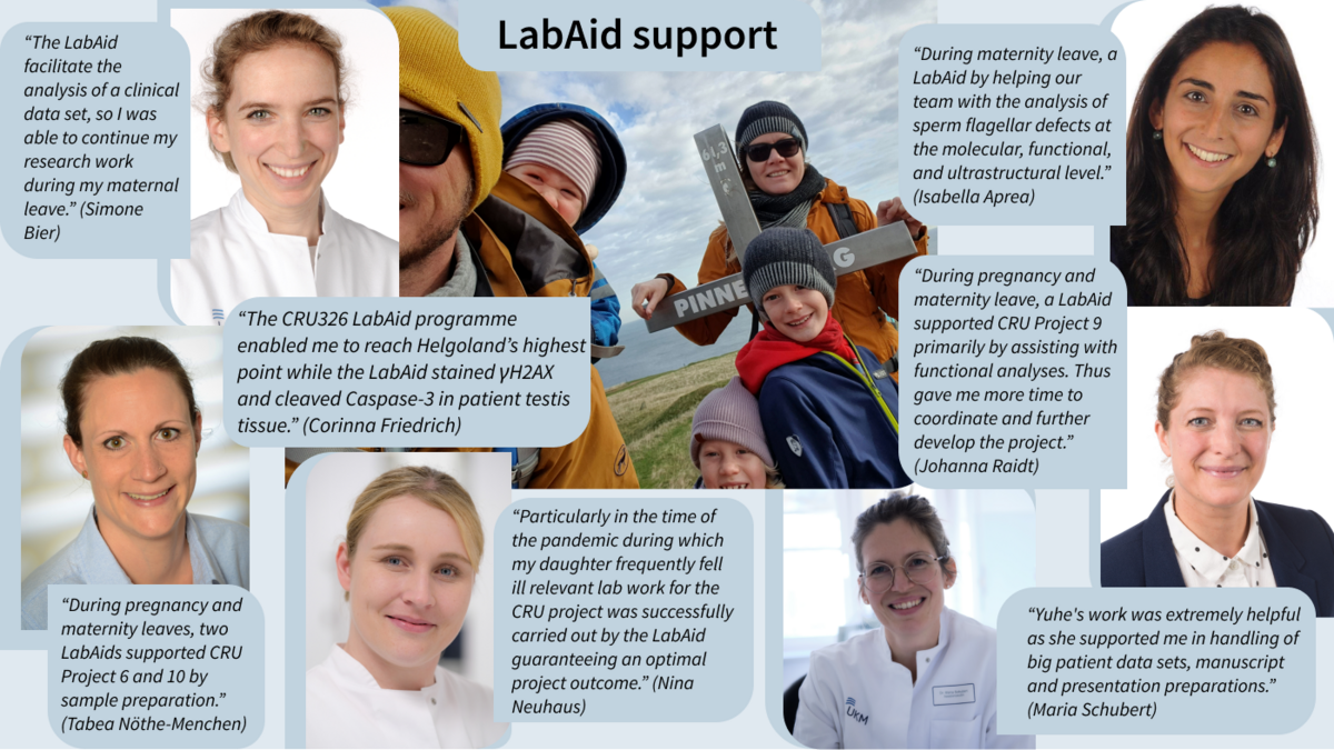 What will be covered? LabAid for 5h/week for 6 months (can be adapted individually, extension possible). Pregnant women: up to 10h/week if work with teratogenic substances is necessary or for the duration of pregnancy. LabAids can be 'Studentische Hilfskräfte' (SHK), 'Students with Bachelor' (SHB) or 'Wissenschaftliche Hilfskräfte' (WHK).