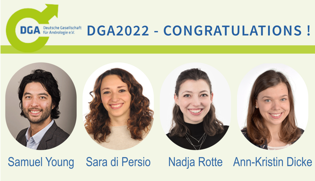 This year’s andrology highlight, the 34th DGA (German Society for Andrology) congress in Giessen, was not only a huge success on the scientific level – but also on the personal level. Four of our CRU326 members were awarded for presenting their research: