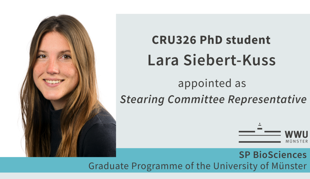 CRU326 member Lara Siebert-Kuss (Centre of Reproductive Medicine and Andrology, CeRA) and PhD student Jos Cox (Institute of Plant Biology and Biotechnology, IBBP) have been appointed as Stearing Committee Representatives for the graduate students of the SP BioSciences programme of the University of Münster.