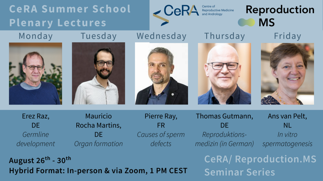 Plenary Lectures: This year's CeRA Summer School will feature Plenary Lectures in cooperation with Reproduction.MS, highlighting esteemed scientists from The Netherlands, France, and Germany.