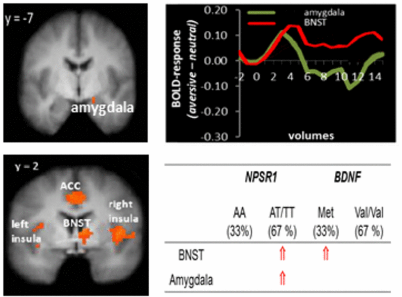 The project C07 aims 1) to investigate brain networks involved in phasic and sustained fear with high-resolution fMRI and 2) to reveal modulatory effects of BDNF and NPSR1 polymorphism on phasic and sustained fear brain responses in specific phobia.