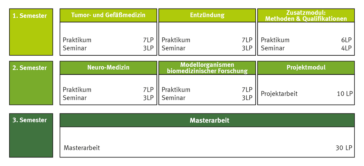 Die Experimentelle Medizin besteht aus zwei Abschnitten, der Junior Class und dem Masterstudiengang. Beide Abschnitte sind modular aufgebaut, was eine hohe Flexibilität für die Studierenden bedeutet, für die Dozierenden aber auch eine Herausforderung darstellt.