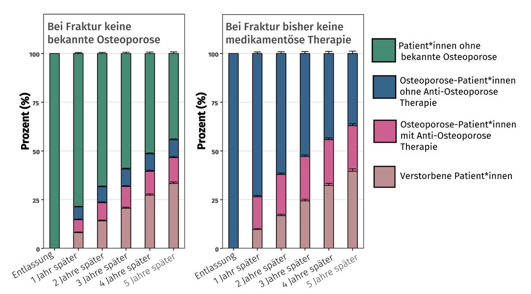 Zusammengefasst gibt es einen nicht unerheblichen Teil an Menschen mit zwei, manchmal sogar drei unterschiedlichen Frakturen über den Verlauf, bei denen dennoch weder eine Diagnose zu finden ist, noch eine Therapie eingeleitet wird. Frakturen, deren Rekonvaleszenz teilweise sehr langwierig und mit einer stark herabgesetzten Lebensqualität einhergeht.