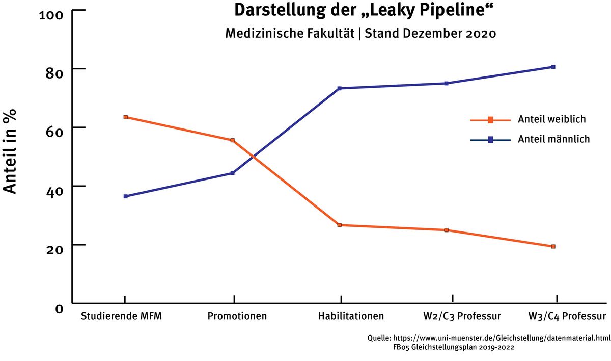 Die sogenannte „Leaky Pipeline“ zeigt es deutlich. In der Hochschulmedizin sind Frauen in den Karrierestufen ab der Promotion deutlich unterrepräsentiert. Dafür sind mehrere Faktoren verantwortlich - ein ganz wesentlicher ist das Fehlen von guten Netzwerkstrukturen zwischen Frauen von der Promotion bis zur Professur.