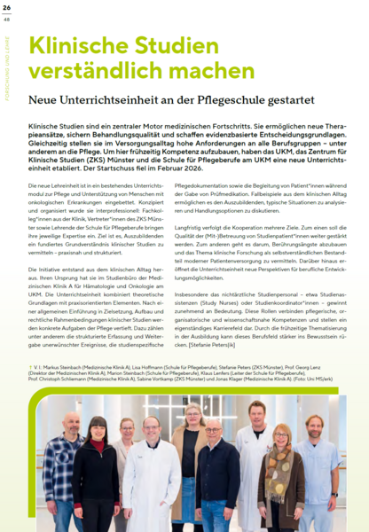 Im aktuellen Pulsschlag ist das ZKS Münster in einem Artikel vertreten.