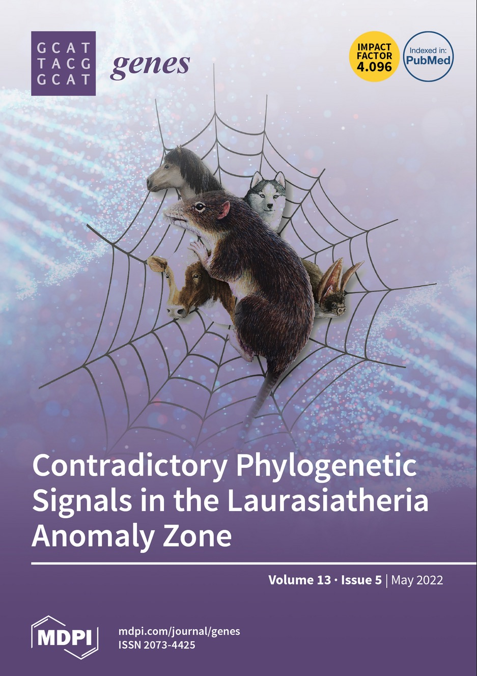 | 80. | Doronina L, Hughes GH, Moreno-Santillan D, Lawless C, Lonergan T, Ryan L, Jebb d, Kirilenko BM, KorstianJM, Davolos LM, Vernes SC, Myers EW, Teeling EC, Hiller M, Jermiin LS, Schmitz J, Springer MS, Ray DA | Contradictory phylogenetic signals in the Laurasiatheria anomaly zone; | Genes 13:766, 2022 | Cover | |