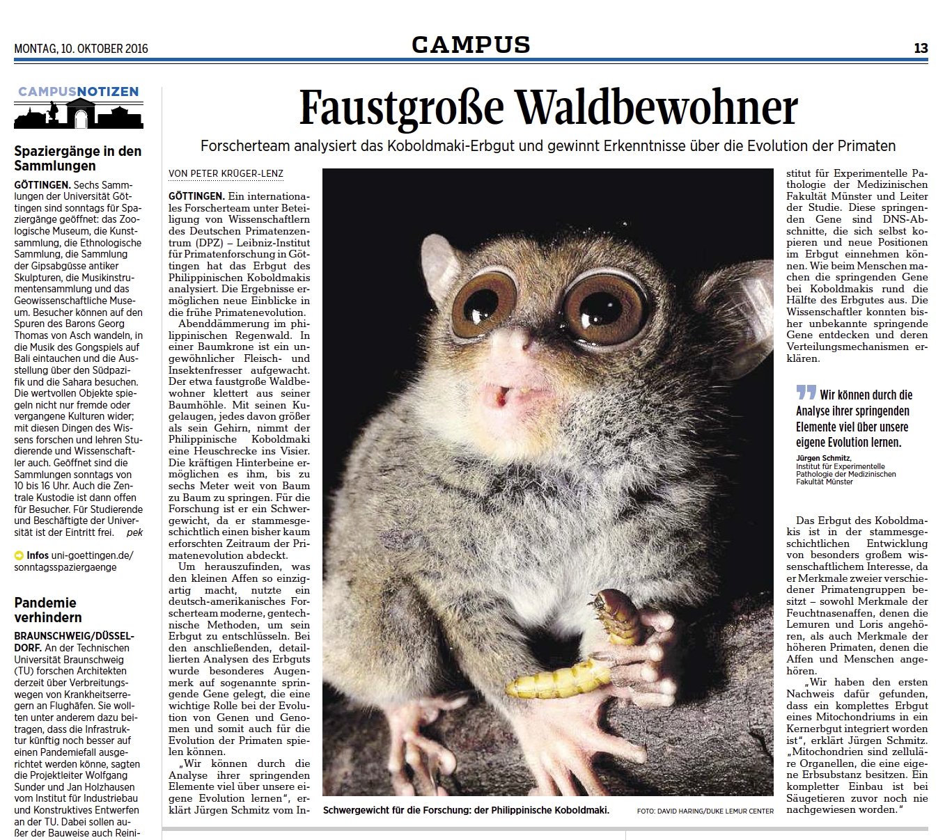 Göttinger Tageblatt | 10.10.2016Faustgroße WaldbewohnerVon Peter Krüger-Lenz , Göttinger Tageblatt, Montag 10. Oktober 2016, Campus Seite 13Zeichnung: Jon Baldur Hlidberg