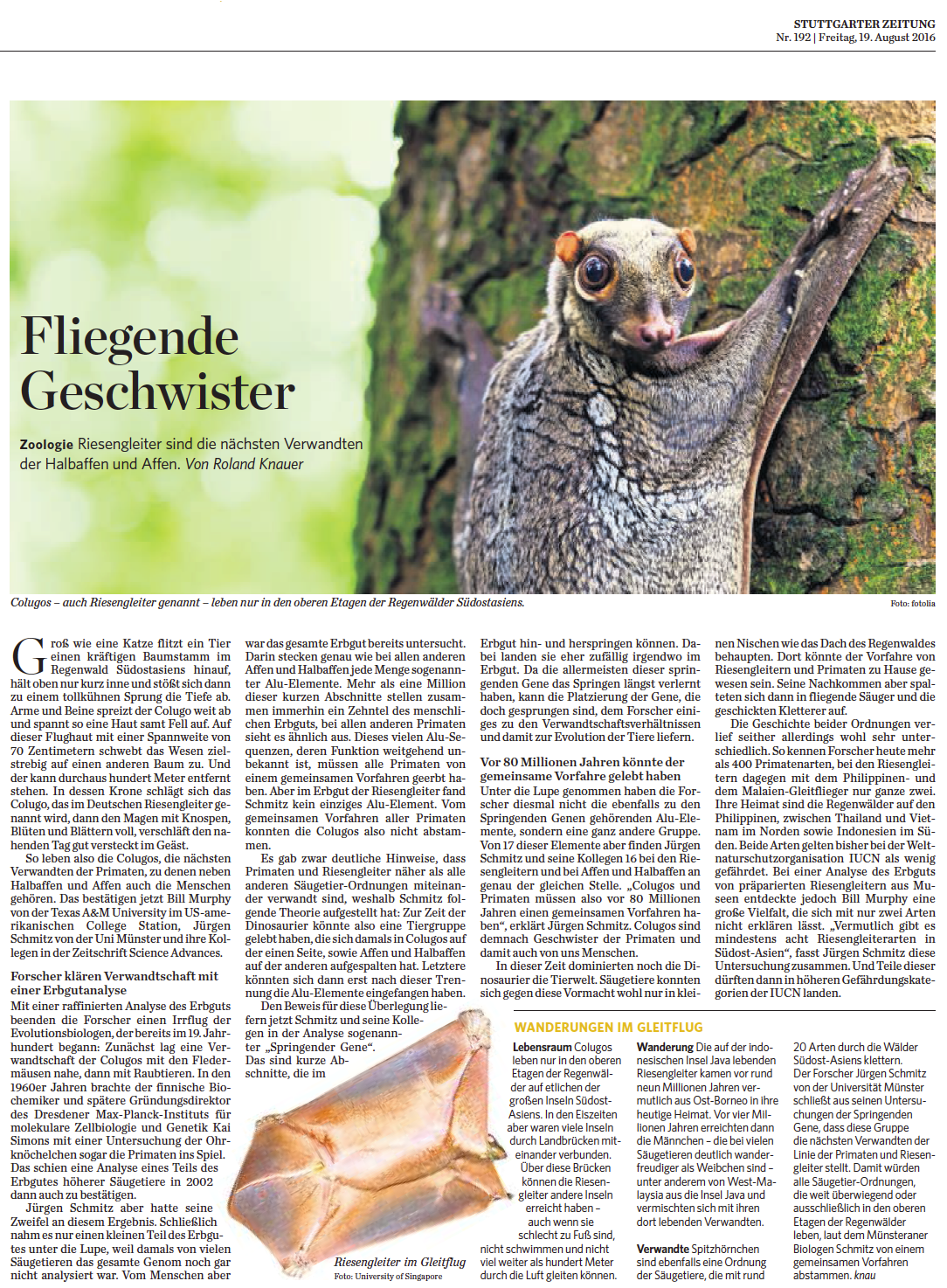 Stuttgarter Zeitung | 19.08.2016Fliegende GeschwisterVon Roland Knauer, Stuttgarter Zeitung, Nr. 192 Freitag 19.August 2016 TagesAnzeiger Zürich | 10.08.2016Der Bund Schweizer Tageszeitung| 12.08.2016Von Roland KnauerSalzburger Nachrichten | 20.08.2016Unsere Geschwister flitzen durch den WaldZeichnung: Jon Baldur Hlidberg